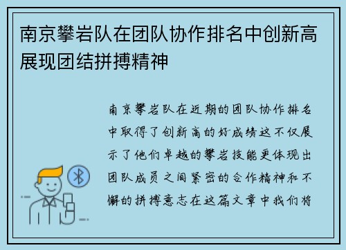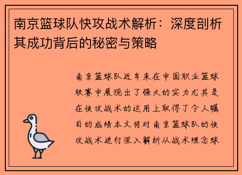本文将对南京街舞队的战术进行深入分析,重点探讨其防守与反击之间的完美结合策略。我们将从四个方面进行详细阐述:首先,分析南京街舞队的防守策略,包括其选手如何通过协调配合来保持阵型;其次,探讨反击时机的把...